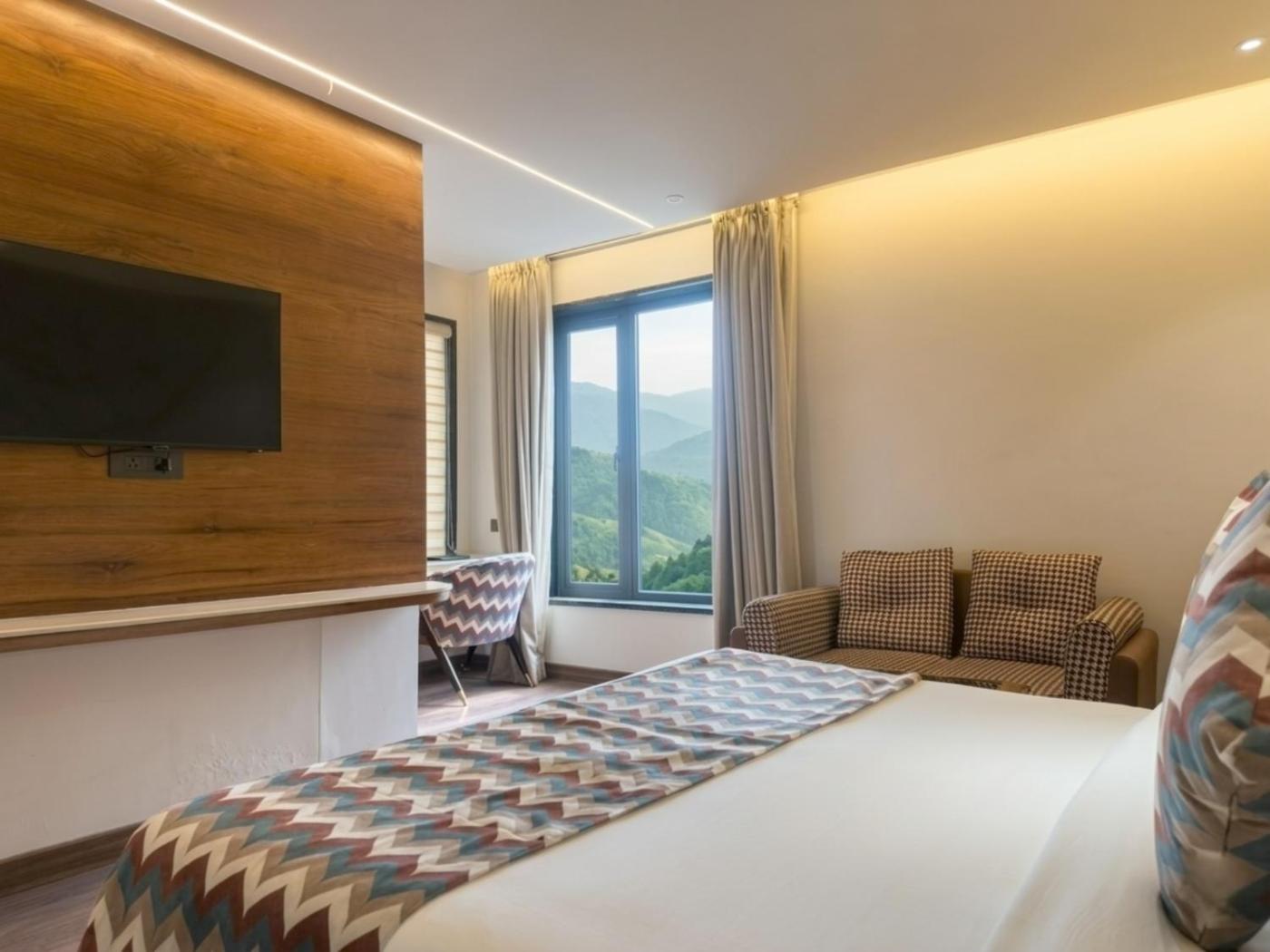 Deluxe King Room. Featuring free toiletries, this double room includes a private bathroom with a walk-in shower, a bidet and a hairdryer. The air-conditioned double room features a flat-screen TV with streaming services, soundproof walls, a minibar, a seating area as well as mountain views. The unit has 1 bed. ;